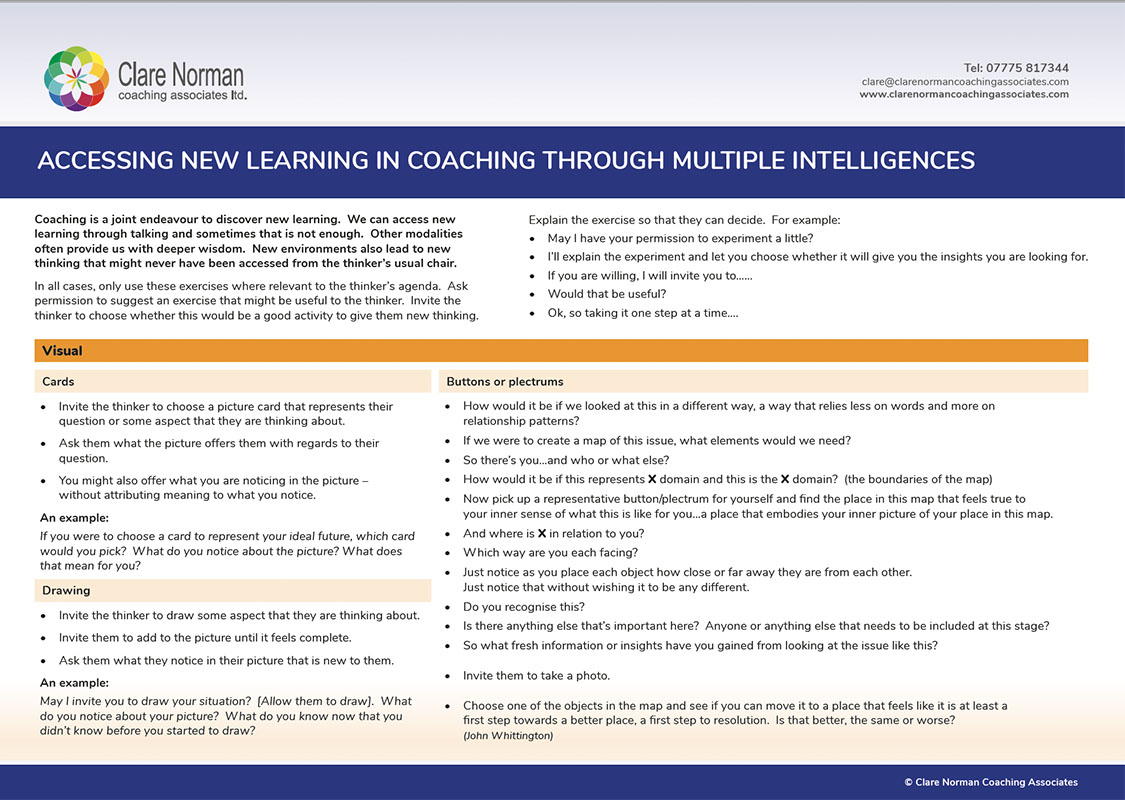 Accessing new learning in coaching through multiple intelligences. Now includes a supporting video.